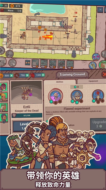 下载圣殿守护者是一款非常创新的塔防冒险游戏,它将策略,冒险,竞技结合在一起,给你一个充满挑战的游戏经验。这款游戏最主要的功能就是塔防。在这款游戏里,你将作为一个守卫神殿不被任何敌对势力侵犯的守护者。要想顺利守卫神殿,你必须在正确的地方建立并提升要塞的防卫力量,还要培养英雄,搜集资源,并使用战略打击敌军。