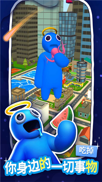 2、与其它人物进行竞争,通过吃东西来决定自己的体积。