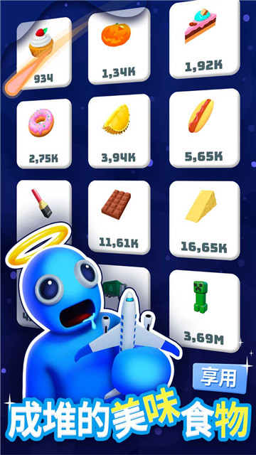 1、通过鼠标的轻触,人物的动作,以及好玩的动作,让你的人物越吃越多,越快越好。