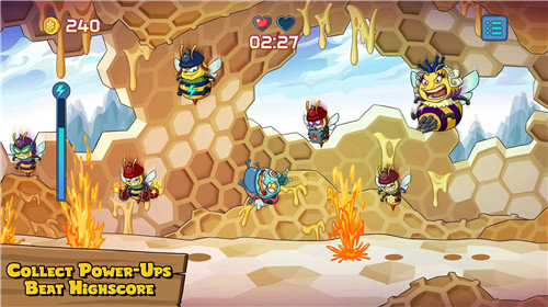 下载轰炸机黄蜂是一款充满丰富挑战的冒险游戏,你可以解锁并完成很多的挑战,在每个阶段中,你都可以自由的控制自己的人物,去进行更多的危险,只要小心不去骚扰黄蜂女王,你就可以轻松地避开他们的追击,去完成你想要做的事情。