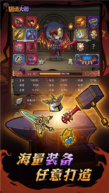 1、这是一款简单的RPG游戏。你将成为传说中的锻造大师,开启你的冒险和锻造之旅。
