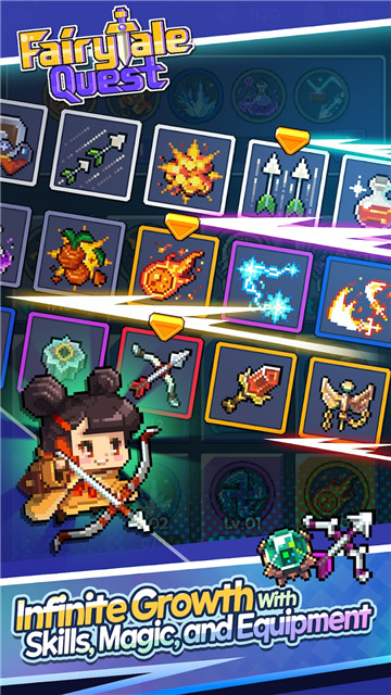 下载童话探险是一款复古像素画面风格的冒险类休闲RPG游戏。在游戏中,你将会以一个普通的冒险者的身份,在一个充满了各种危险的地方,完成各种各样的任务,赚取高额的奖励,赚取材料和金钱,锻造出最好的装备。无数的童话人物等待着你的解锁和你一起冒险,还有可爱的宠物可以收集。