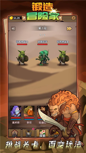 下载锻造冒险家是一款具有独特风格的放置手机游戏,在这个幻想的世界里,你是一个冒险家,你需要打造装备,升级角色,建立团队,对抗强大的敌人,对人物和装备进行恰当的组合,在战场上发挥自己的技术,获得最终的成功。你可以在自己的装备和角色之间进行自主的组合,体验到冒险和战争的快乐和兴奋。