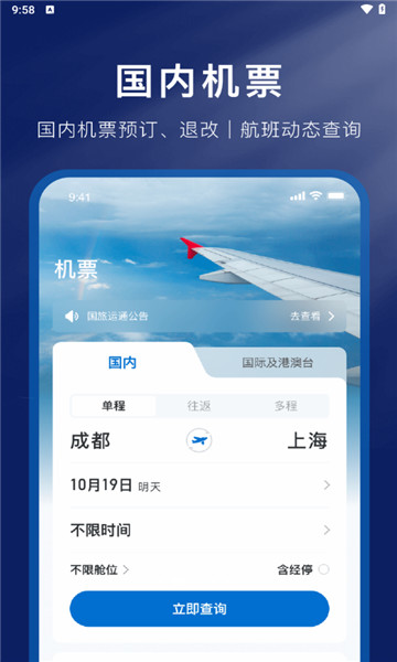 2、随时预定随时都能在平台上预定各类旅行机票,让您为旅行旅行作好充分的准备。