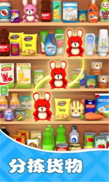 2、策略消除的困难,需要游戏者精心布置货架,完成类似项目的通关任务。