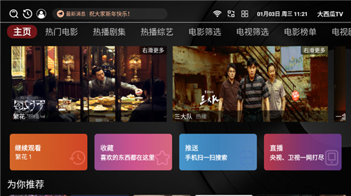 下载大西瓜TV是一个拥有大量的影视资料供您自由观赏,您可以在此不花钱地欣赏任何一部影片。用户可以根据自己的需求,选择自己喜爱的观看模式,从而达到最大程度的满足观看需求。全部都是免费的,用户不用担心需要付费会员才可以观影。