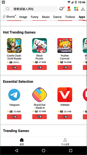 vidmate是一款很多人都在使用的视频资源平台,也是一个强大的应用下载App,用户能够下载海量的视频资源,更多好玩、有用的工具App免费提供。