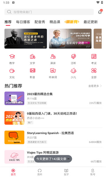 2、每日更新您的听力资料库,并向您推荐当地的音频及其他教学资料,以帮助您提高您的英语水平。