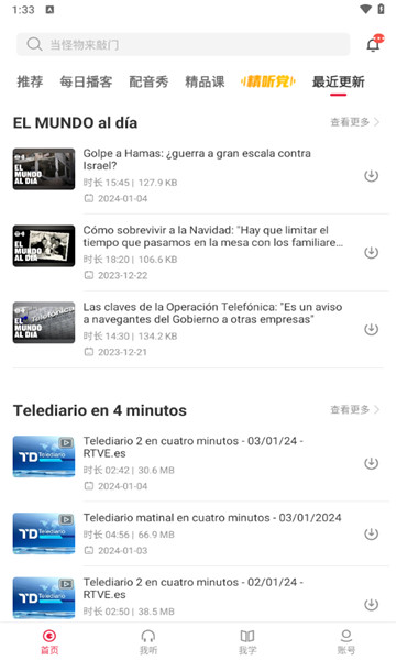 3、选择音频进行大量的下载,并将全部的录制全部存储,在这儿可以更有效地学习。
