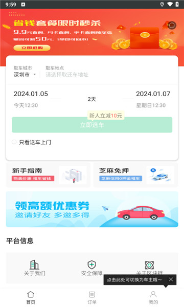 3、为用户提供全方位的租赁服务,伴随用户实现无忧旅行。