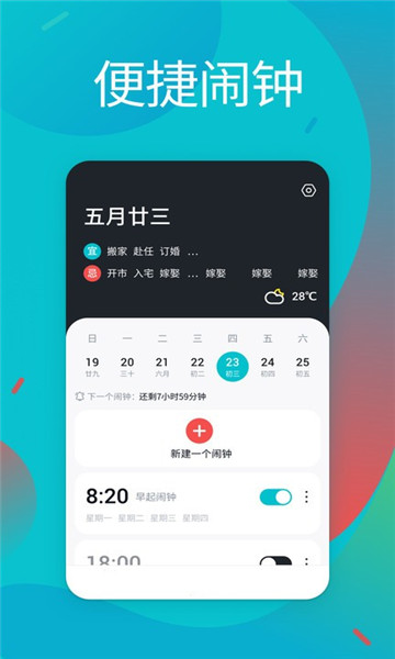 2、超多闹钟功能,让使用者可以自由设定不同的闹钟设置,一天不重复。