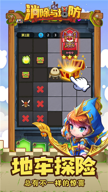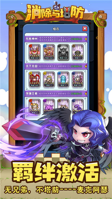 1、消除游戏与塔防战相融合,并加入了大量的人物、道具等新颖的玩法,使得游戏具有独特之处。