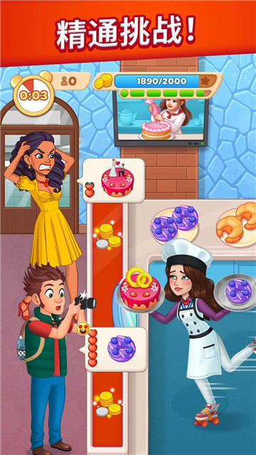 3、具有多种交互要素。您可以藉由完成任务,挑战比赛及与其它游戏者交流而获得奖赏及提高您的烹饪技巧。