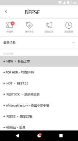 REESE会不定期推出限定折扣,APP会自动推播新品讯息,让你不再错过任何优惠活动,比较适合喜欢购物和穿搭方面的用户群体,会经常给你推送一些时尚潮流元素。