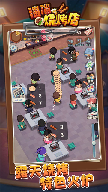 下载淄淄烧烤店是一款模拟经营类游戏。在游戏中,你将会仔细的管理他的烤肉摊子,并且挑选一个好的位置。若要在家中摆摊,则可充分发挥庭院内的空间,营造出温馨宜人的用餐氛围,方便邻里及亲友前来试吃。假如你打算在繁华的地铁站旁摆摊,你要注意人流、同行状况,并且要注意在这个快速发展的社会中,怎样才能把客人吸引过来。
