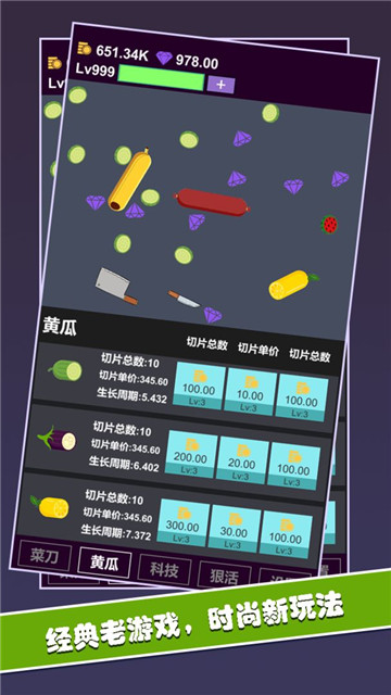 下载黄瓜茄子切切切是一款休闲趣味游戏,我们需要将黄瓜和茄子切割成指定的大小,在这个游戏里,有很多的关卡等着我们去完成,每个阶段的切割条件都不相同,而且因为有一定的时限,所以这个游戏的难度也比较高,所以我们一进去就能快速的上手。