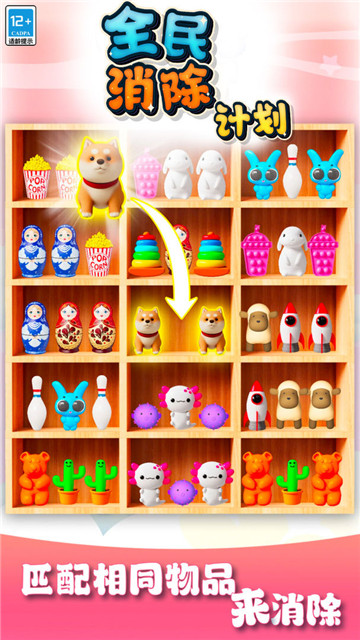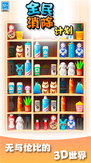 下载全民消除计划是一款玩法简单画面简洁的消除闯关游戏,里面的布置非常的合理,所有的东西都被陈列在了里面,而这些东西的种类也非常的多,你要用你的手指灵活的动作来完成任务,整个过程非常的精彩,你要做的就是将所有的东西都进行配对,然后将它们从架子上取下来,获得更多的快乐。