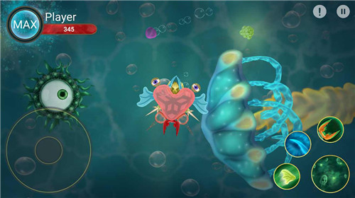 3、具有挑战性的玩法,加入了细胞吞噬的理念,让你在战斗中不断地进行各种思维、各种战术,以达到更好的进化结果。