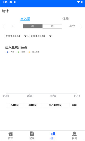 3、每日出入量统计辅助,每日对出入量与重量进行记录与统计,十分便利。