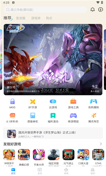 1、每日最快的游戏上线,最全的分类,专题,推荐,海量的资料,即时的升级。