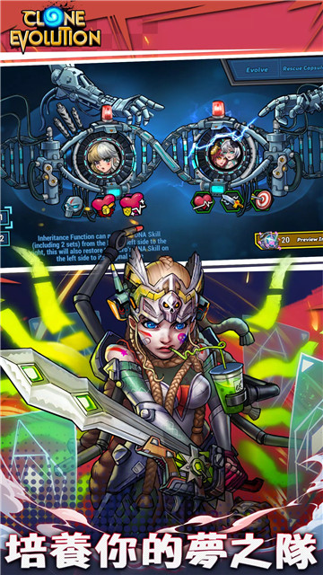 2、基因池中储存了上百个不同的基因,各种传说中的英雄混战,还有更多的惊喜等着你去探索。