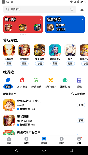3、游戏:海量正版手游,有些游戏可以直接下载,有些游戏可以通过线上秒完。