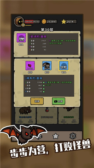 1、你要一步一步地与怪物搏斗,并搜集各类设备和材料来提升你的力量。