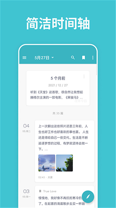 简洁的时间轴在日后查看日记的时候非常便捷,一目了然的快速查看日记。
