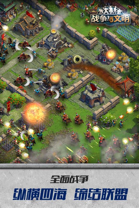 游戏以文明进化为主题,用战争促进文明发展,还可以将古今名将纳入麾下,驰骋沙场,所向披靡。