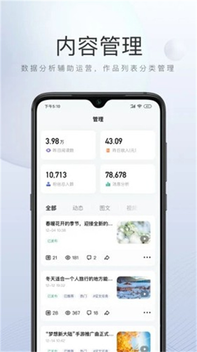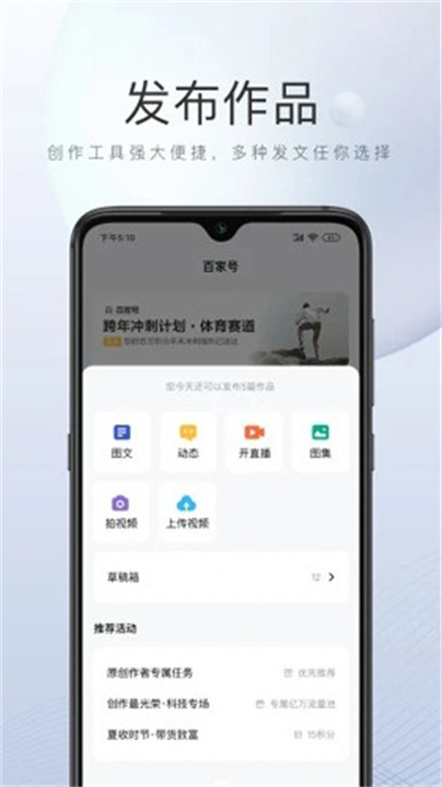 1、支持内容创作者轻松发布原创文章、图片和视频等作品,投稿后会在各种平台上发布。