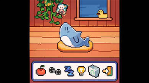 2、操作很简单,就是在屏幕上按下一个按钮,就可以给你的小鲨鱼喂食。