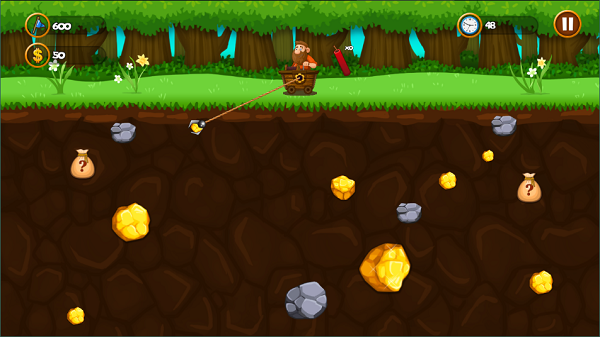 3、尽可能向金矿多的地方下钩子,这样可以有大概率不会空手而归。