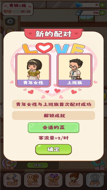 1、设置了一系列的工作与挑战,以推进剧情发展,提高红娘的名誉与生意。