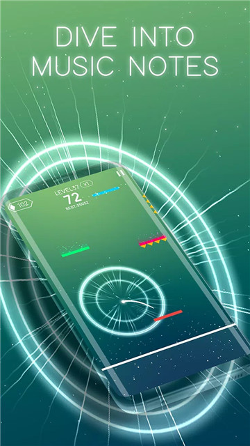 1、通过触摸,玩家可以根据音乐的节拍来操纵小球,躲避障碍并得分。