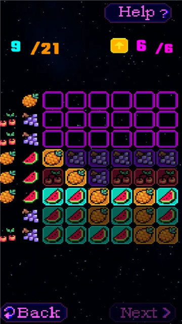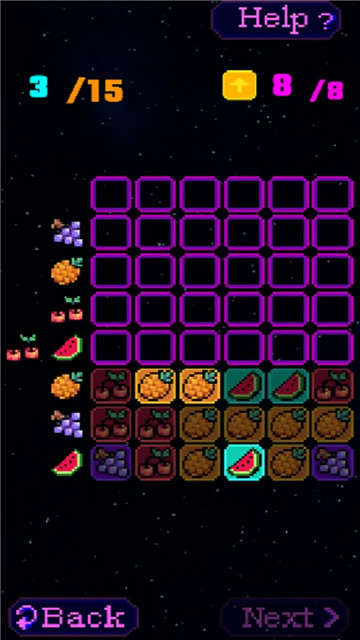 1、需要剔除同种色彩的果实,剔除的次数愈多,则分数愈高。