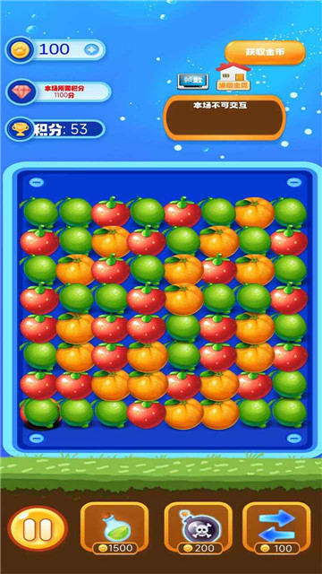1、持续消灭果蔬,开启炸弹、变色球、消除器等多种新物品,加速通关过程,提高通关快感。