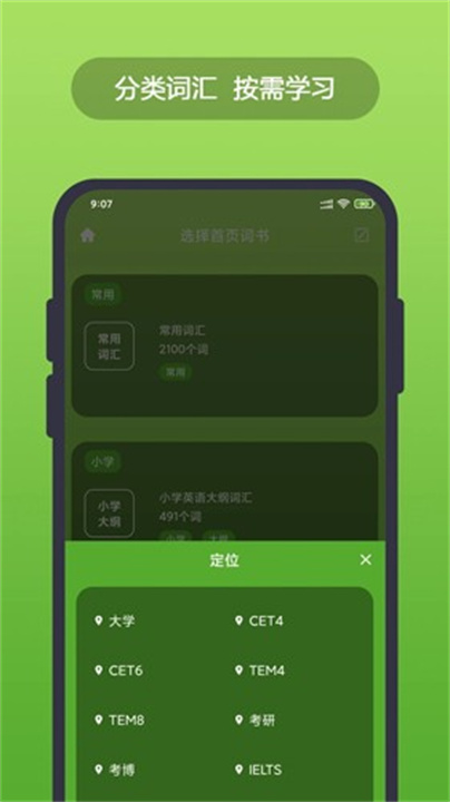 1、根据英语水平进行分级,用户可以根据自己掌握的水平,选择最适合自己的词汇。