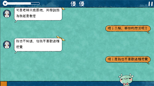 3、提供了丰富的互动方式。在这个过程中,玩家需要同时操纵两种人物,一种是抑郁的人,另一种则是伙伴。