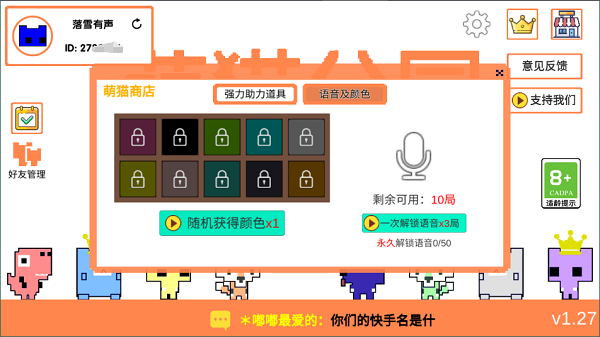 萌猫公园是很经典的一款小游戏,各种玩法层出不穷,自由的搭配通关队伍,无论在操作还是在流程方面,都有不错的场景设计,是很值得推荐的解压类型小游戏。