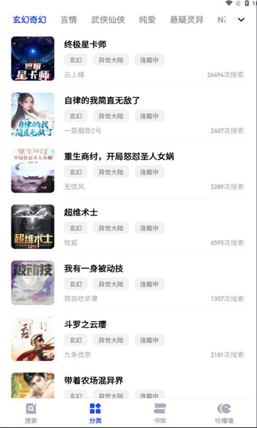 3、在分类页面,根据小说类型选择您感兴趣的作品进行阅读。