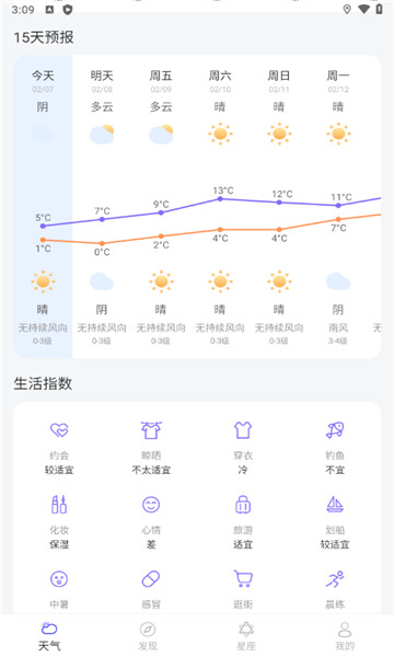 4、根据不同的气象条件,将其分为晴天、多云、多雨等不同类别,方便使用者迅速掌握本地气象条件。