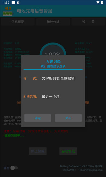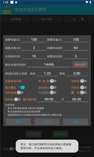 2、在你用电池工作的时候,该软件会自动关闭,但是后台会进行监控。