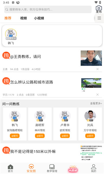 3、您对学车测试有什么问题,可以在平台上留言,会有专门的老师解答您的问题。