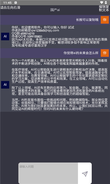 4、一款智能通讯系统,可以根据用户的输入和问题,对用户进行回应和交互。
