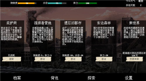 1、搜集各种物资,提升安全等级,继续做野外生存类的任务。