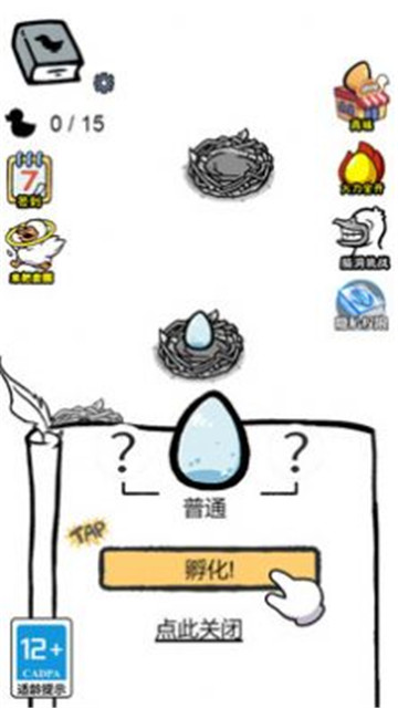 1、在游戏中玩家需要选择鸭蛋和孵化工具
