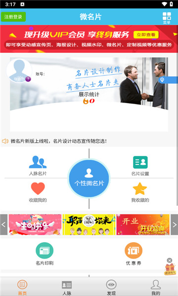 3、为个人或公司提供全面推广服务,一键制作专属个人名片。