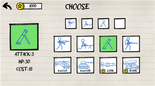 1、你将扮演一位战地统帅,操纵着手里的火柴人,缓慢地在地图上与敌人交战。
