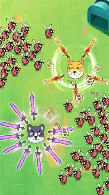 3、滑动屏幕调节狗儿的运动,精准地将飞刃抛出,杀死对手。