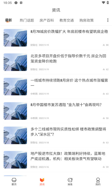 1、在这里你可以看到最新的房产资源,也可以看到打折的消息,也可以轻松的了解到房价。